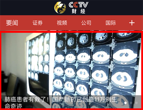 央视财经新闻客户端:《重大福音!肺癌患者有救了!国产新药已创造11万例生命奇迹》