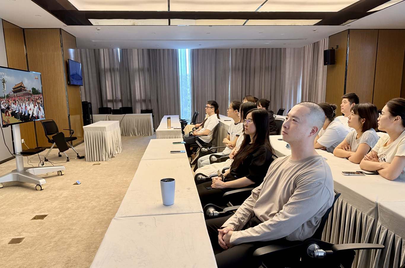 当日上午,OD官方网页版,OD(中国)药业党委、北京党支部、嵊州党支部、工会、团委、妇联、侨联组织了代表成员集中收看阅兵盛况。大家一致表示,九三阅兵不仅是一场庄严的纪念活动,更是一堂生动的爱国主义教育课。通过观礼,深切感受到中华民族的伟大抗战精神,进一步激发了爱党爱国的热情和奋发进取的责任感。接下来,将把这种振奋人心的精神力量转化为立足岗位、勇于创新的实际行动,在推动公司高质量发展的同时,为保障人民生命健康、实现中华民族伟大复兴贡献更大力量。